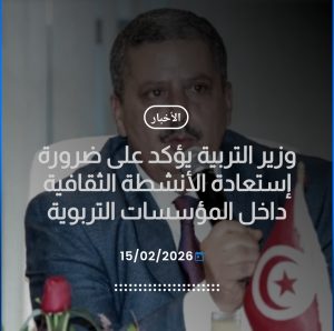 أكد وزير التربية نور الدين النوري خلال اشرافه صباح اليوم الاحد 15 فيفري 2026، على اختتام فعاليات الملتقى الوطني للصورة بالمدارس الابتدائية الذي احتضنته مدينة دوز على امتداد ثلاثة أيام ان وزارة التربية تعمل على استعادة الأنشطة الثقافية من خلال مزيد نشر النوادي داخل المدارس الابتدائية والاعداديات والمعاهد ومنحها كل أدوات العمل.وأشار نور الدين النوري الى مشاركة 26 مندوبية و52 تلميذا وتلميذة مع مؤطريهم والمسؤولين المكلفين بالانشطة الثقافية بالمؤسسات التربوية من مختلف ولايات الجمهورية في هذا الملتقى الذي يتنزل في اطار رسم خطة عملية اكثر قوة لاستعادة مكانة هذه الأنشطة التي تمثل مجالا رئيسيا في بناء شخصية الطفل وتحصين المدرسة ضد كل الظواهر المستجدة والتي تمثل في كثير من الأحيان ميلا للفراغ والعنف.وأفاد الوزير بان هذا الملتقى الوطني يمثل عنوانا من بين العناوين التي تعمل عليها وزارة التربية من أجل بناء شخصية الطفل لافتا الى ان المشكل في المؤسسة التربوية لا يكمن في الزمن المدرسي بل في ضرورة إعطاء قيمة هامة للحياة المدرسية الى جانب التدريس باعتبار ان الزمن المدرسي الحالي يسمح بتنظيم الأنشطة على حد تعبيره.وشدد في ذات الاطار على ضرورة تشجيع المربين واقناعهم وتحسيسهم بأهمية الحياة المدرسية مشيرا الى ان ما تم عرضه في الملتقى الوطني للصورة بالمدارس الابتدائية هو نتاج لعمل المربين الذين أطروا تلاميذهم.وأعرب نور الدين النوري عن رغبة الوزارة في توسيع هذه التجربة لتصبح فاعلة داخل المدارس من خلال زرع الثقافة لدى التلاميذ عبر التركيز على الفنون المتنوعة من رسم و موسيقى ومسرح و سينما وغيرها نظرا لكونها تحصن التلاميذ وتبني شخصيتهم بطريقة متوزانة تؤهلهم للدفاع عن أنفسهم دفاعا قيّما ثقافيا وفكريا يمكنهم من مواجهة الكثير من التحديات على غرار ارتفاع منسوب العنف والظواهر المستجدة التي تحدث هنا وهناك.(وات)
